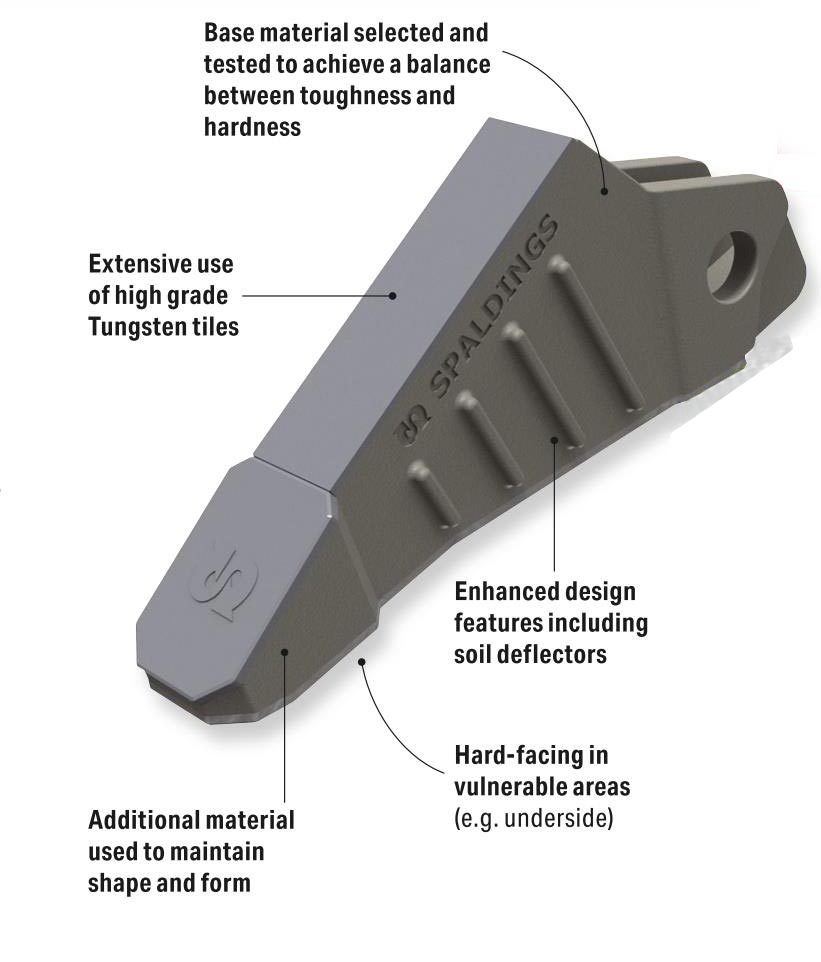 Spaldings Tunsten Carbide parts are suitable for all soil types with the exception of very stony ground.