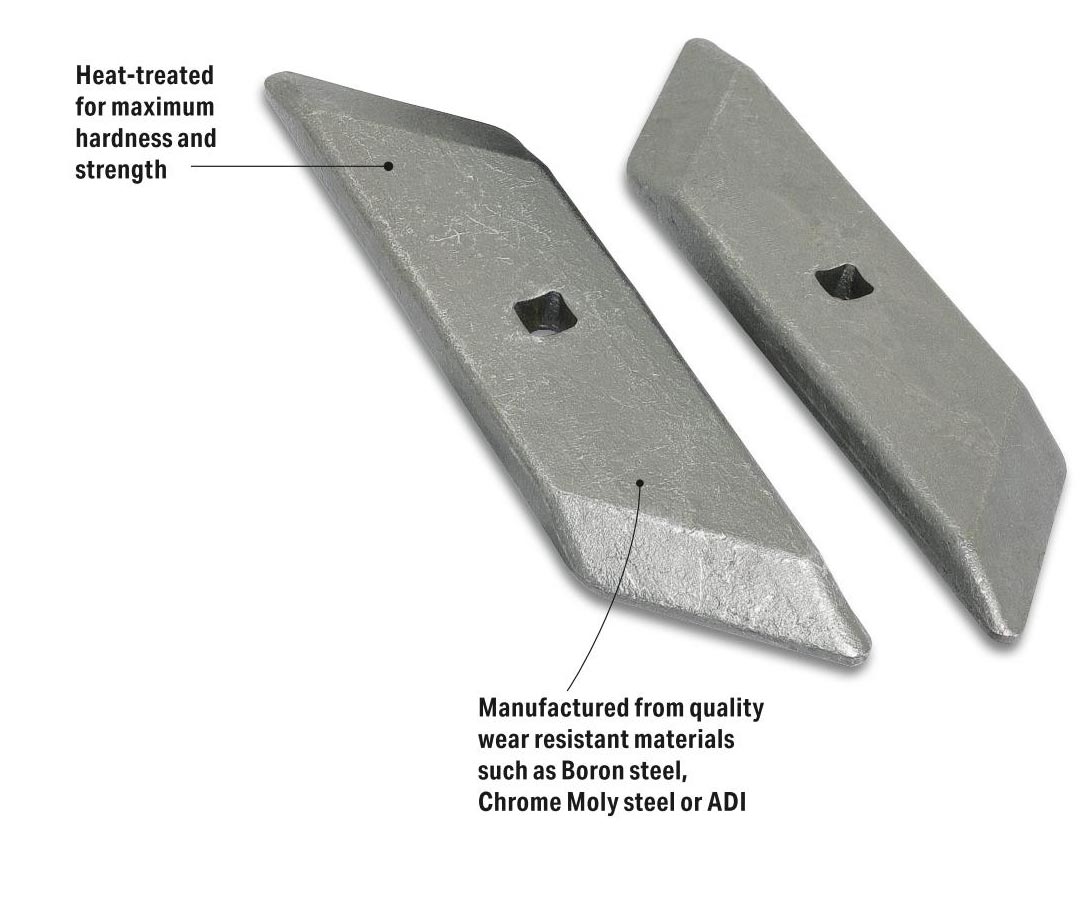 Spaldings standard replacement parts are produced to the highest specification from the best quality, wear resistant materials such as Boron steel, Chrome Moly steel or ADI, which is then heat treated in a carefully controlled environment to produce parts with maximum hardness and strength.